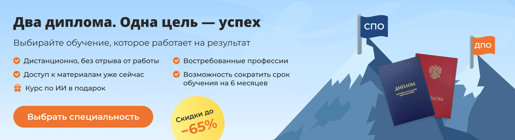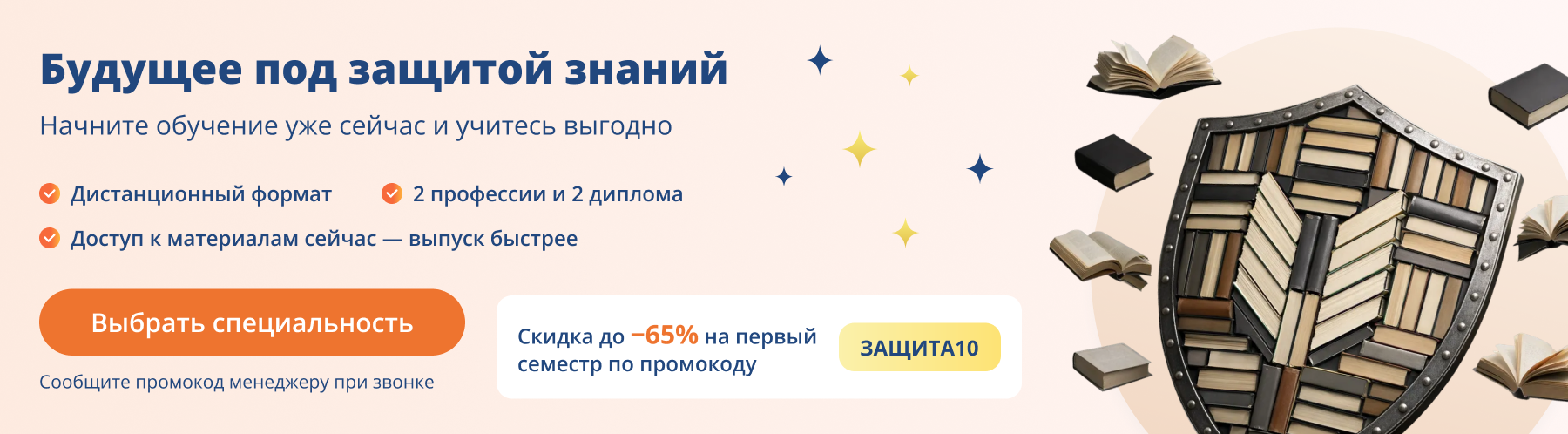 Оплатите сразу весь период обучения и получите скидку. Чтобы узнать размер скидки для выбранной программы, формата обучения и расчетного периода, обратитесь к нашему специалисту.