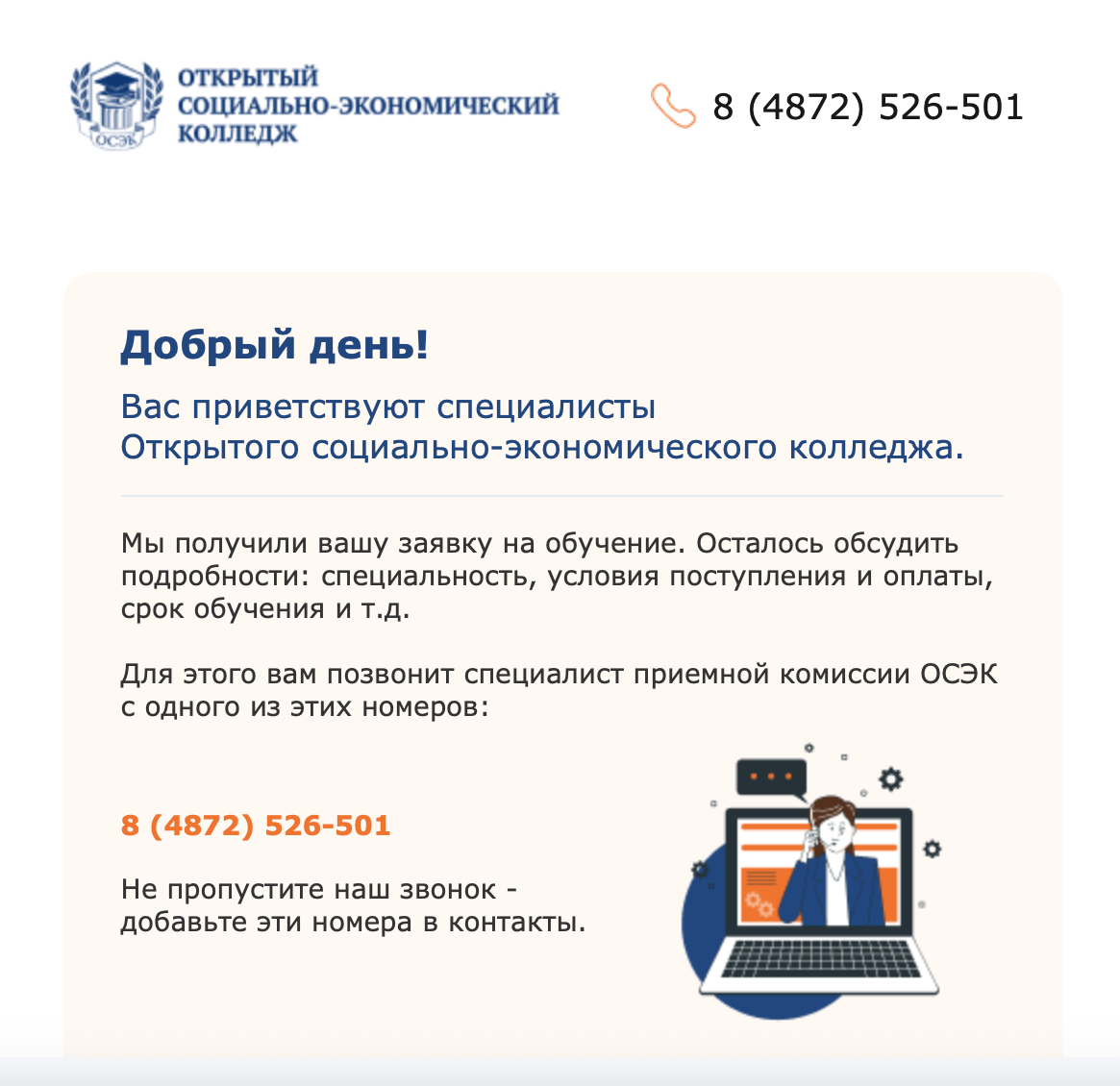- Уточнит стоимость обучения, льготы, способы оплаты, варианты рассрочки.