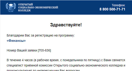 - Расскажет о сокращенном сроке обучения, если Вы работаете