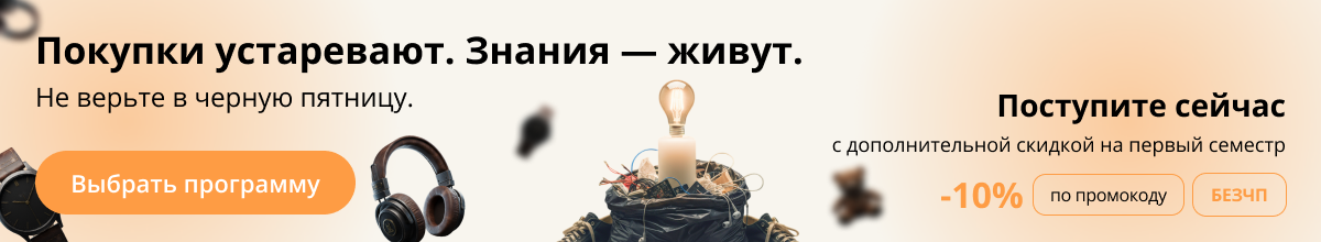 Оплатите сразу весь период обучения и получите скидку. Чтобы узнать размер скидки для выбранной программы, формата обучения и расчетного периода, обратитесь к нашему специалисту.