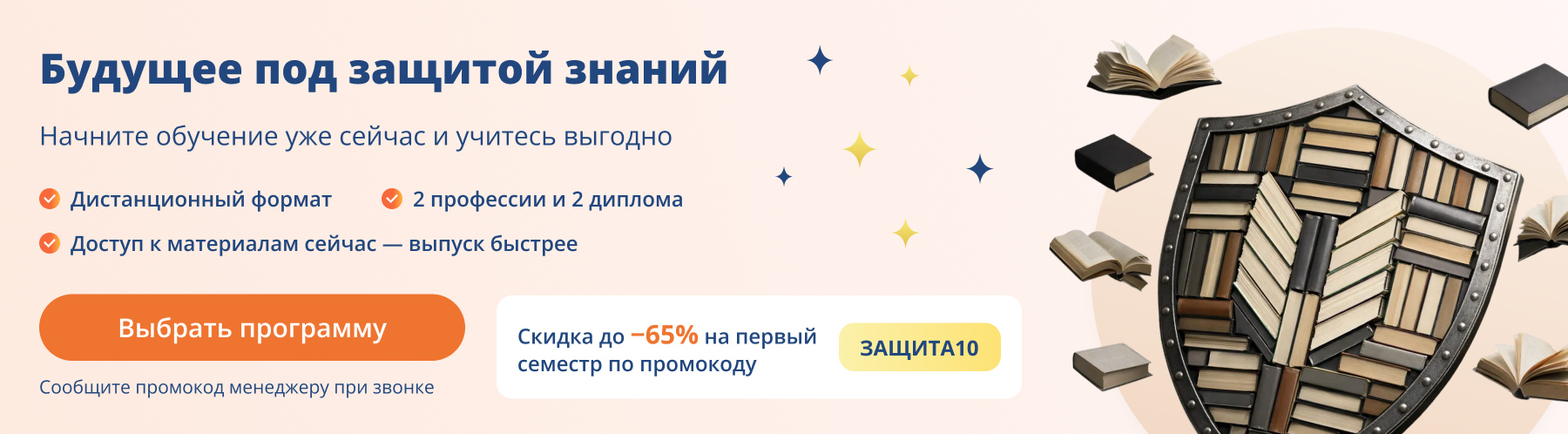 Оплатите сразу весь период обучения и получите скидку. Чтобы узнать размер скидки для выбранной программы, формата обучения и расчетного периода, обратитесь к нашему специалисту.