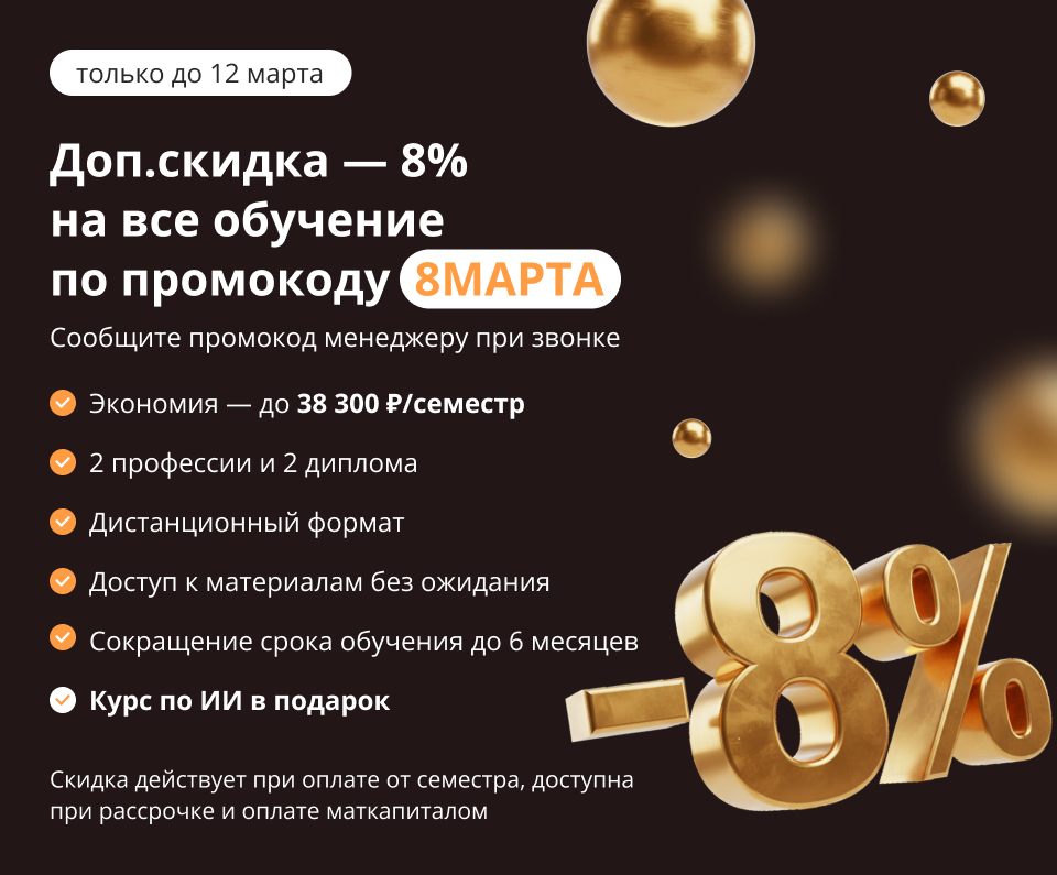 Учеба проходит без поездок. Вы сами определяете время для занятий и сдачи сессий.