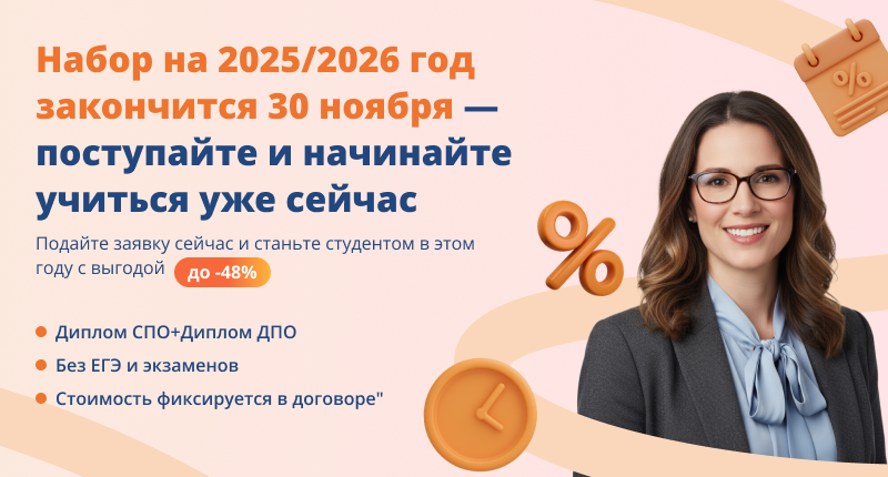 Программа профпереподготовки — подарок к основной специальности СПО. Слушатели осваивают ее на последнем курсе без увеличения срока обучения.